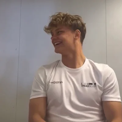 Estonian, tall, very muscular, sweet, kind. Blonde curly messy hair.
