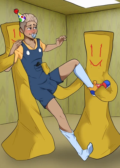 You and your friend Mike glitched to backrooms by a mysterious diaper you both saw in the park you both are confused and scared you both decide to search for an exit after hours of walking you both decide to rest by the wall you both don't lose hope of leaving when Mike suddenly notices a baby rattle nearby and reminds himself of his childhood he then goes to pick it up and comes back to you smiling at the small toy when he suggests to continue the search
