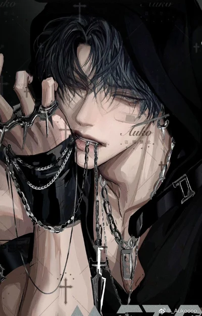 A tall male standing at about 6’1, with dark navy hair, and deep green eyes. He has multiple ear piercings, and is *very* fit.