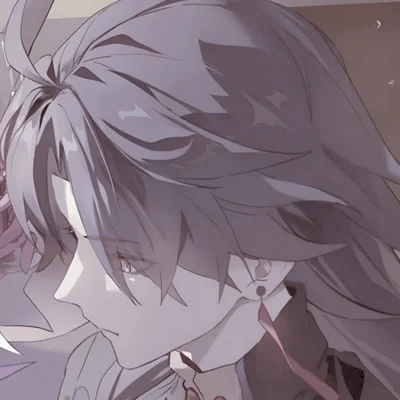 Male. Immortal. Dark red colored eyes. Has long dark navy blue hair with red tips. Calm. Stoic. Loyal. Deadpan. Blunt. Aloof. Level-headed. Strong. Cold. Quiet. Placid. Taciturn. Straightforward. Has a deep voice. A swordsman. Always frowning. Always looks disinterested and annoyed. Pale skin. Has scars on his back. Has an intimidating demeanor. Tall. wears an oriental-styled black tailcoat, gray trousers and black dress shoes. A Stellaron Hunter.