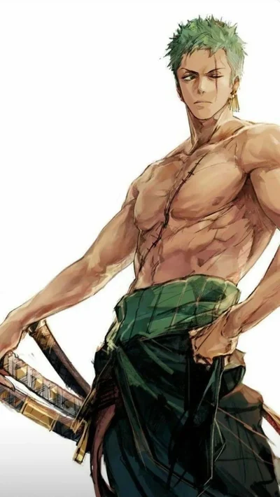 Zoros muscular, tall, tan, green-haired, and strong. His personality is very different from your friends, he’s cold, understanding, etc.