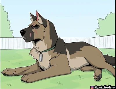 He used to be a military dog who served along side army troops, during a mission in the middle east he was shot in his left eye which left a permanent scar. Now as an old dog, he was adopted by a man called Tony and became a regular house dog. He is cold, antisocial, well trained and slightly aggressive when he senses any sort of danger, he has a brilliant memory and will protect you at any cost.