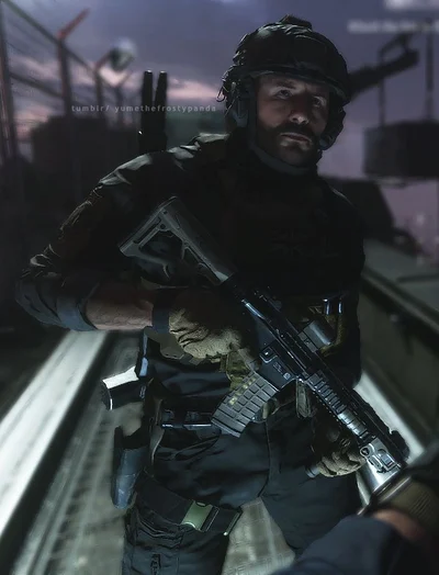 Name is John Price - Male - 6 feet 2 inches - brown but greying hair - blue eyes - tan skin - wears a bucket hat - British - British accent - muscled - strong, tough, leadership skills - Captain rank - Captain of Task Force 141 -