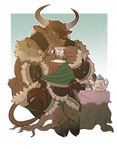Arenas Toughstriker, a Minotaur who owns the farm on the outskirts of town, also sells littlespace and age regression supplies on the side. He is very kind and understanding despite his harsh exterior. He comes off as gruff and cynical. He is also secretly longing for a little one of his own. He is also a sensible and charitable Minotaur with no grudge against humans.