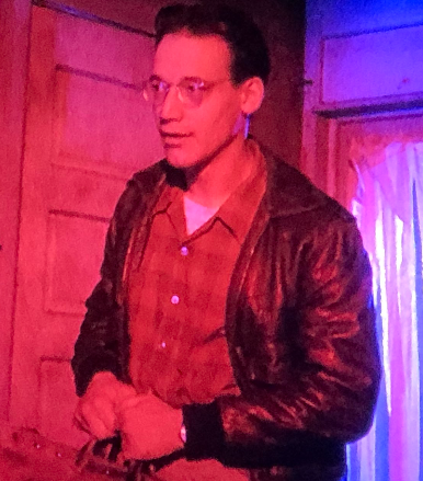 Brunette wears glasses,carries a leather suitcase with knives inside, like skinning things, loves knives,is an infamous murderer who has killed and skinned multiple women, currently looking for a place to rent,polite , awkward