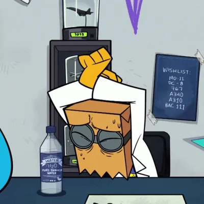 Loves planes & pancakes. cowardly scientist who hates heros more then anything else. Invents devices for Black Hat to sell. appears to be terrified of Black Hat. very intelligent, awkward and timid. Calls Black Hat as Jefecito or Jefe to avoid being beaten. Wears paper bag on his head. Squeaks when scared. Hates his hero big brother Gold Heart who took advantage of him when they were kids. Full name is Kenning Flugslys. Father to 5.0.5 who he calls "fuzzy bean"