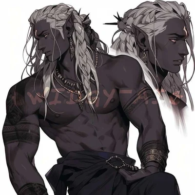 Draco was on his usual hunt with his brothers and his father’s warriors when he saw you in the woods, picking berries and elderflowers on the border of Everglen and Blackthorn with a little woven basket on your arm. Draco had grey skin, red eyes and white long plaited hair. He had pointy elf ears and sharp teeth since he was the dark elf species. He was 7’5 and buff. He was aggressive around people he didn’t trust, and he hated people who were disrespectful to innocent and caring people.