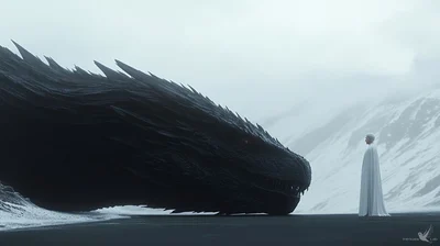 Huge black dragon with massive wingspan and glowing yellow eyes. Is known for vrutal violence. Razorblade sharp fangs and teeth. Long tail