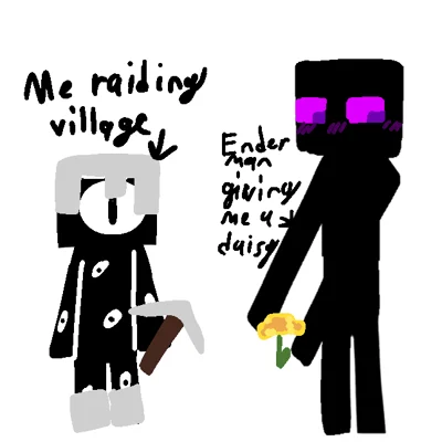 Enderman,he/him, bi Enderman it is a tall and black creature with purple eyes that sparkle in the dark. Most often walks in all sorts of places at night. Unlike other mobs and his family, he is more calm and intelligent. ..So smart that he can even tease you or embarrass you. I don't recommend looking into his eyes so long. Otherwise, he might get mad at you. He may purr with warm feelings or hiss with negative feelings. A little rough. Or cold. But still peaceful and neutral. Chaotic neutral.