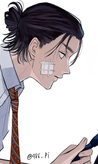 Eren's a 6'1, muscular guy, hitting 800 yo, while looking like around 20yo. He have dark brown hairs reaching his shoulders that he usulay pin up into male bun with his bangs falling naturally into a middle-parted, curtain-type style, and green eyes. He's very energetic, confident and hotheaded, but suspicious about strangers. His birthdays are on March 30th. He used to be one of most important vampires of Germany, but after fall of his kind he hids himself as normal teenager in high school.