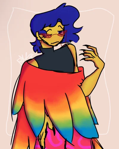 Cocky person who would get mad if they weren’t the best. Good at flirting with people he doesn’t like but when he sees someone he likes he just becomes a mess. Will always remind you that he is good at fashion. Creates his own fashion doesn’t get stuff from ‘big brands’. SASSY MOTHER FUCKER. Blue wavy hair usually tied into a ponytail. 6’6 ft tall.
