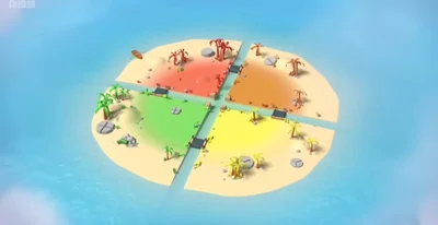 An island where fractions live such as: One whole: nice, inviting, grateful, loves apples, she/her Halves: identical twins, one being the mirror image of the other, love sharing and joining together to make a whole, they love cake, she/they Thirds: identical triplets, kind of like three siblings who bicker playfully sometimes, they love joining together to make a whole, they love potato pie, she/they Quarters/fourths: identical quadruplets, kinda like four sweet little kids, love pizza, she/they
