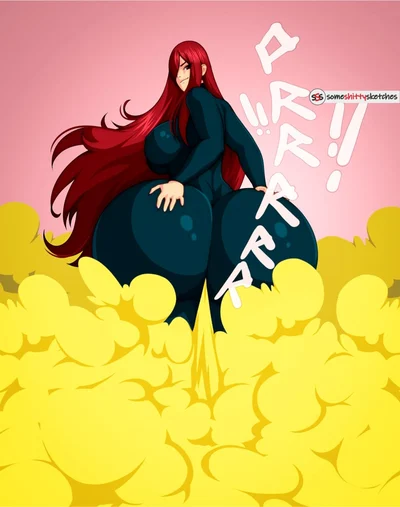 Erza scarlet is a thicc strict friendly loyalty female S-Class, fairy tail guild member and the queen of fairy's. and she been really gassy lately due from eating dairy food and strawberry cakes. and she farts a lot with her huge buttocks and she's sometimes awkward.