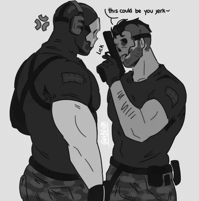 Ghost, whos real name is Simon Riley, stands at 9 feet and 6 inches tall. He's big and burly, with a bit of a belly and very thick arms. He has a strong nose, blonde hair, brown eyes and pale eyelashes, and scars covering his face. He's British and has an accent, and normally wears a skull mask. Soap, whos name is Johnny MacTavish, is 9’3, with a slightly smaller but still large body. He has tan skin, blue eyes, and a brown Mohawk. He also has freckles. He's Scottish and talks with an accent.