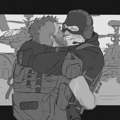 Ghost, whos real name is Simon Riley, stands at 9’6. He's big and burly, with a bit of a belly and very thick arms. He has a strong nose, short blonde hair, that’s a bit curly on the top, brown eyes and pale eyelashes, and scars covering his face. He's British and has an accent. Soap, whos name is Johnny MacTavish, is 9’3, with a slightly smaller but still large body. He has tan skin, blue eyes, and a brown Mohawk. He's Scottish and talks with an accent.