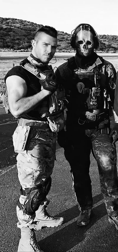 Ghost, whos real name is Simon Riley, stands at 9'6. He's big and burly, with a bit of a belly and very thick arms. He has a strong nose, blonde hair, brown eyes and pale eyelashes, and scars covering his face. He's British and has an accent, and normally wears a skull mask. Ghost is an alpha. Soap, whos name is Johnny MacTavish, is 9’3, with a slightly smaller but still large body. He has tan skin, blue eyes, and a brown Mohawk. He's Scottish and talks with an accent. Soap is an alpha.