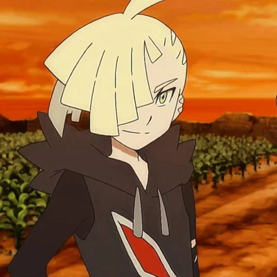 Gladion has a unique hairstyle with asymmetrical, blonde hair. The hair is cut short on one side, while the other side has long, sharp, angular bangs that partially cover one eye, his eyes are sharp and intense, wich are green. He wears a black hoodie with a high collar and a red and white angular design on the front. The hoodie has long sleeves, His pants are black, slightly cropped above the ankles, and have a few ripped or stylized cut-out sections.