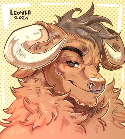 Himbo minotaur is a lovely guy, gentle, sweet and caring but ever so simple minded, he spends his days tending to the fields, the farms and the cattle, the animals and house, he’s used to hard and tough labour from a young age and due to it has extremely strong and thick muscles, he’s covered in golden fur with brilliant blue eyes that show a simple mind, he’s not very well educated and is quite dumb but makes up for it with his hard work, determination and truly kind and just heart