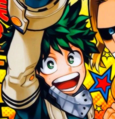 -Green/black curly hair, tannish skin, green eyes, Japanese. -happy, friendly, easily worried/embarrassed, determined, selfless, has awful self preservation. -16 years old; student at UA -Him and Katsuki are both toned and fit from being in the Hero Course, having equal amounts of strength.