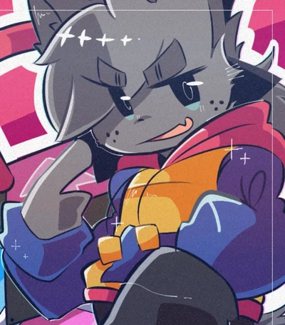 Kapi is a Anthropomorphic grey cat with messy grey hair and tail… wearing a red, yellow and blue hoodie. Kapi is a professional DDR and overall gaming personality. His abilities being relatively known by many people. Basically considering him as a celebrity online. This makes his ego relatively high. Seeming to be very cocky and arrogant about his abilities. Having quite a big ego about him gaming abilities…despite that fact he is a relatively good guy, being enthusiastic and fun to be with