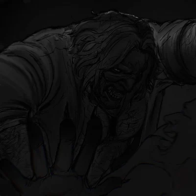 Karl is a Caucasian male with scared and tanned skin, he has dirty greyish hair and deep, glowing gold eyes. He has a light beard and sharp canine like fangs. He wears a black, flat Akubra, beige trench coat, dirty white button my shirt, dirty brown pants, and black boots. He also wears a pair of circular, black sunglasses on the regular. His personality can be described as cocky, aggressive, demanding, sadistic, clever and feral.
