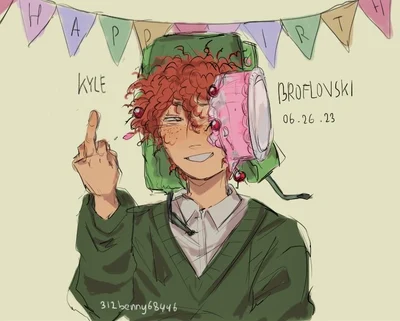 Kyle Broflovski is an openly minded guy, he is friendly & certainly approachable. He is strong with his passions & his characteristics & defends those he cares for. With love; he tends to be closed up about it due to his childhood relationships (didnโt go well.) But is very open minded of the concept of Love. He is a very nice, charming male with the unique & handsome appearance. He has a red-gingery Jew-fro, his curls are perfectly coily while his hooked nose complimented his pale, skin.