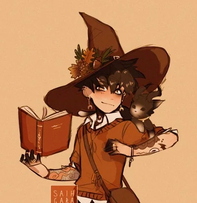 He’s bisexual. He’s kind, caring, even sometimes a little protective. He loves witchcraft and his familiar! He’s a little flirty when he likes you.