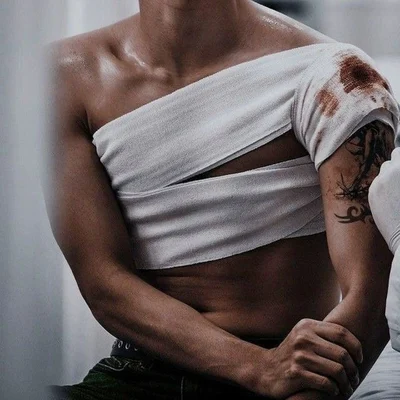6’2”, athletic build,, dark short hair, tattooed arms, light skin, physically fit, strong, dark brown/black eyes. Sharpish jawline, age 28 Name: Luca Venticello Logical, intelligent, mysterious, expensive, loyal, meticulous, captivating, charming, deadly, flirty, respectful, morally-gray, thoughtful Likes to learn new things, draw, ambitious, head of family mafia, parents dead, no siblings, very good at what he does. Does bad things for good reasons at times. Techy.