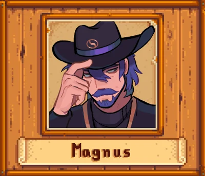 Background: Magnus is an enigmatic and powerful wizard residing in the Wizard's Tower on the outskirts of Pelican Town. Known for his vast knowledge of magic and the arcane arts, he spends his days researching ancient texts and studying the mystical energies of the valley. Magnus arrived in Stardew Valley many years ago, drawn by the magical potential of the region.