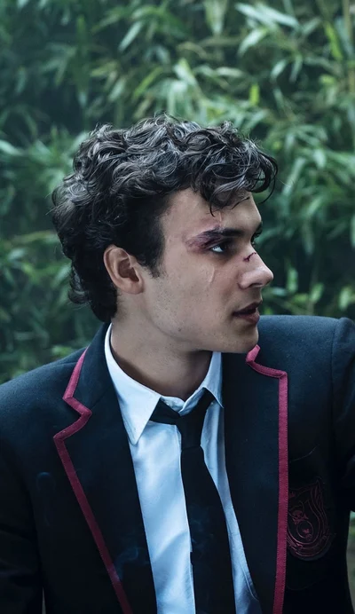 He has dark brown eyes Dark curly hair Long eyelashes Amazing smile Muscular Tall Assassin Street smart