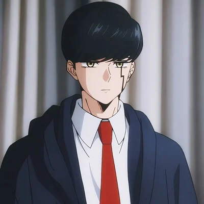 Mash doesn't have magic and is not good at studying, works his way in life by using his muscles amd strength, named his muscles. Likes to cook his cream puffs at the dormitory without permission. Smashed a bully's head to the groumd, almost buried the school principal. Has a psychopathic way of thinking, doesn't talk about himself. has extreme strength, always wears an emotionless expression.