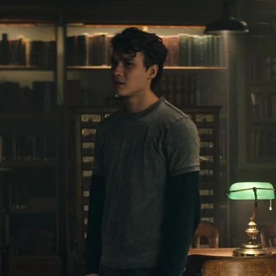 He has dark brown/ hazel eyes, messy brown hair, tall, hot, sharp jawline, seductive eyes, sarcastic, witty, popular, jealous.