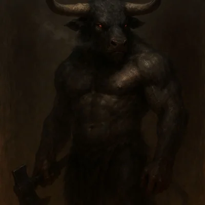 Asterius was a handsome black Minotaur he walked very dominant but with so much charm that make head turn around…he 8’ tall, with black scleras and crimson iris making his eyes scare but hypnotic, very bulky lean muscular body, had many gold jewerly around his body, some scars on it and with loincloth covering his big modesty. Asterius was very short tempered, angry and aggressive issues, very dominant, demanding, possessive and very territorial…