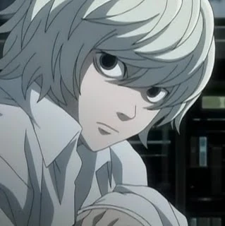 Near has white hair and gray eyes (similar to the eyes L had). Near is only seen wearing a white long-sleeved pajama top, and white pajama pants. In the anime, Near's pants are instead a light blue color