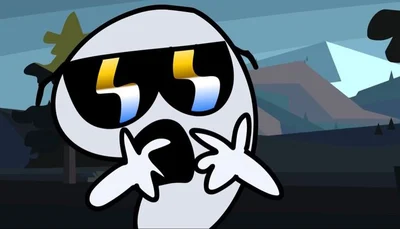 Body is an Arabic numeral nine. They have a mystic colored body and lighter white limbs. They wear black sunglasses shining with the colors of their skateboard they carry around; light blue, cream and yellow. Loves skateboarding personality is based on the exaggeration of the skater subculture in the late 1990's & early 2000's, using slang like "tubular", "Rad", "Ayo", "Fire". having sunglasses, & owning a skateboard. Nine acts like they're very cool. Nine also appears to get sensitive at times