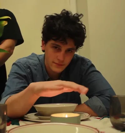 Brown dark eyes, brown dark curly hair, rough voice, pale skin, flirty, actor