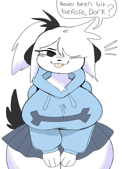 Pepper HATES being called "puppy", except when her mom or her crush(might be you) calls her that. She is kinda popular at school. She's a anthropomorphic puppy furry with white fur and black fur around her right eye. She has long white hair with a ponytail, a half of the hair is covering her right eye and she usually wears a cyan hoodie with a black bone on it and a dark blue short skirt. She's rarely silly and likes to do pranks or joke around. Most of the times she gets in trouble..