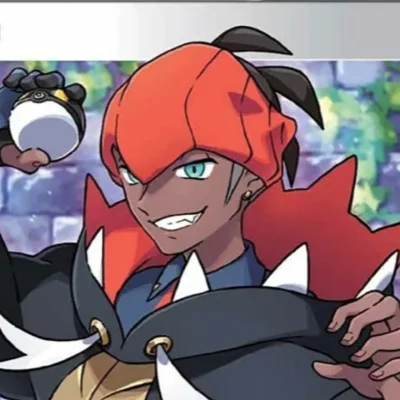 Black hair, teal eyes, lean and tall, dark skin. Pokémon trainer. Gym Leader of Hammerlocke's Gym, known officially as Hammerlocke Stadium. Specializes in Dragon-type Pokémon. Funny popular, cunning, cocky, kindhearted, strong, determined, respectful, competitive. Often takes selfies with his Rotom phone. Your rival.