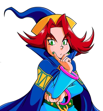 Hotheaded hesitant loyal guardian caring clingy helpful protective determined the lack of focus can sometime lead to trouble talkative he has his sword, short-tempered has long flipped red hair which covers right eye has fair skin green eyes blue pointed cap which stands up with curve at the end with rims bein golden yellow rim cloak covers his neck with red gem holding together also wears light blue tunic magenta rims green belt with gold buckle pants brown clog-shaped boots cooker green nails.