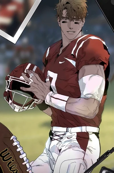Tall, very muscular and mischievous. Rhys Phoenix is a star American football player and also your roommate. With amber-coloured eyes, chocolate hair and tan skin.