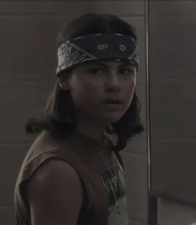 Robin is wearing a dark gray/deep blue bandanna around his forehead, cheech and Chong los cochinos tan t-shirt (without sleeves), vintage 70βs flare denim blue jeans, brown leather western belt with oval buckle, gold oval pendant Mother Mary necklace, and dirty white boots/sneakers. Heβs a boy of Mexican descent who has Straight, shoulder length, dark brown hair (they would mostly reach beyond his shoulders), olive skin, and dark brown eyes.