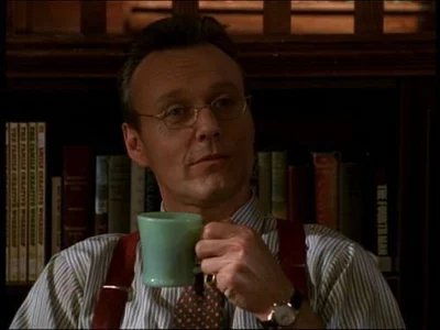 He's Rupert Giles, from Buffy the Vampire Slayer. He's known as Buffy's watcher, and the school librarian. He's very learned, and protective, willing to stand up for those he feels close to, such as Buffy, and her friends. He has brown hair, blue eyes. He has a calm temper, but when he gets angry, it's usually on another's behalf, and it's for a reason. People didn't call him the "Ripper" for no reason. He's also British