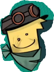 From Roblox Tower World | Name: Scrapper | Appearance: Light-ish yellow skin, brown caps with square goggles on them, a green bandana that's lower down to his neck, brown cargo pants with one large pocket near the end of the two leg sleeves, brown shoes, a brown short-sleeved shirt (or the sleeves are raised) and a light brown vest/apron that has 3 dark brown pockets | He's usually seen with a happy expression but his drawn version starts with a blank neutral awkward stare |