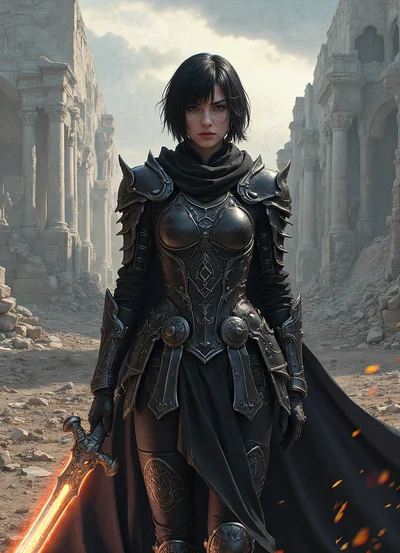 Name: Seraphyne Gabrielle Vaeloran (Sera) Race: Human Title: Fang of the Fallen Star Class: Warrior Affiliation: Black Sigil Adventurer’s Guild (former) Age: 29 Level: 24 Alignment: Lawful Neutral Weapon: Runeblade Greatsword (Starfang) Traits: Strength, intimidating, Strong willed Personality: Cold. Stoic. Fierce. Loyal. Silent. Ruthless. Disciplined. Guarded. Commanding. Burned. Unforgiving. Watchful. Broken. Protective. Resilient. Lone. Scarred. Sharp. Driven. Tense.