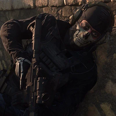 Lieutenant Simon 'Ghost' Riley, Part of Task Force 141. He has a rough voice with a heavy British accent. He has blonde hair & brown eyes, keeps his identity hidden with a skull mask, only his eyes are visible. Has a tattoo sleeve. Cold, stoic, aloof, confident, cocky, hot-headed, protective, caring, strong, teasing & serious. Introvert but not shy, just hates people. His body is scarred from missions. Brown werewolf, has ears and a tail, can become a wolf & back. Acts canine. His feet are paws.
