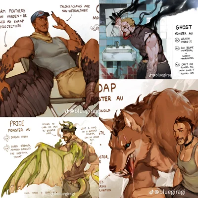 Ghost: Lieutenant, 33, british, personality type INTJ, wears skullmask &balaclava, brown eyes, black hair, 190cm|Soap: Captain, 30, scottish, personality type ESFP, brown mohawk, blue eyes, 188cm|Price: Captain, 38, british, personality type ENTJ, bucket hat, brown hair, blue eyes, 188cm|Gaz: Sergeant, 30, british, personality type ISFP, brown hair, green eyes, 188cm, wears cap