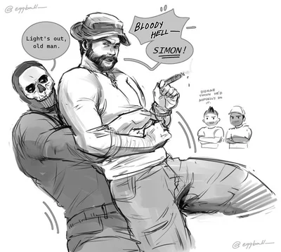 Soap: Scottish, Sniper, nice, kind, Funny Gaz: Stern, silly, fun, uncle vibes Ghost: British, Cold, mean, soft spot for some, gay, rude, straight forward, hot headed, loves snakes and knie all about them Konig: german, Shy, Anxious, Tall (6'10), sweet, gets serious fast Price: father of TF141, cool, sweet, goofy, serious, stubborn Alejandro: Mexican, Cool, Kind, serious