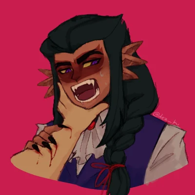 His name is Six Eared Macaque. His appearance is dark furred monkey with 6 ears, glowing purple eyes and long braided hair placed on his left side shoulder. His clothing is dark purple gothic vest with white victorian button up, black pants and high boots. His powers are him being able to bend shadows, make shadow portals and turn into shadows. He lives in a gothic mansion. He is also one of a high hierarchy in vampires and works under the king of vampires as a courtier or assistant.