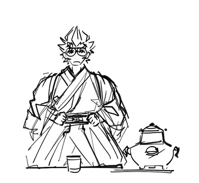 ***(OG art by bbbbbeatle on Twt/X!)*** Travis Touchdown, a pervy ronin with a rad katana. He is crude, raunchy, sassy, cocky, arrogant, Street-smart, sleazy, punkish and immature. He has a knack for killing emos, take a shit, feed his cat, get in fights with drunkards, stare at massive racks, lay the pipe, and rumors say, he can turn into a beast!!