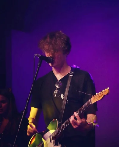 Brown hair & Hazel eyes and god damn he looks attractive has his tie messed up and a white shirt with black pants and black shoes